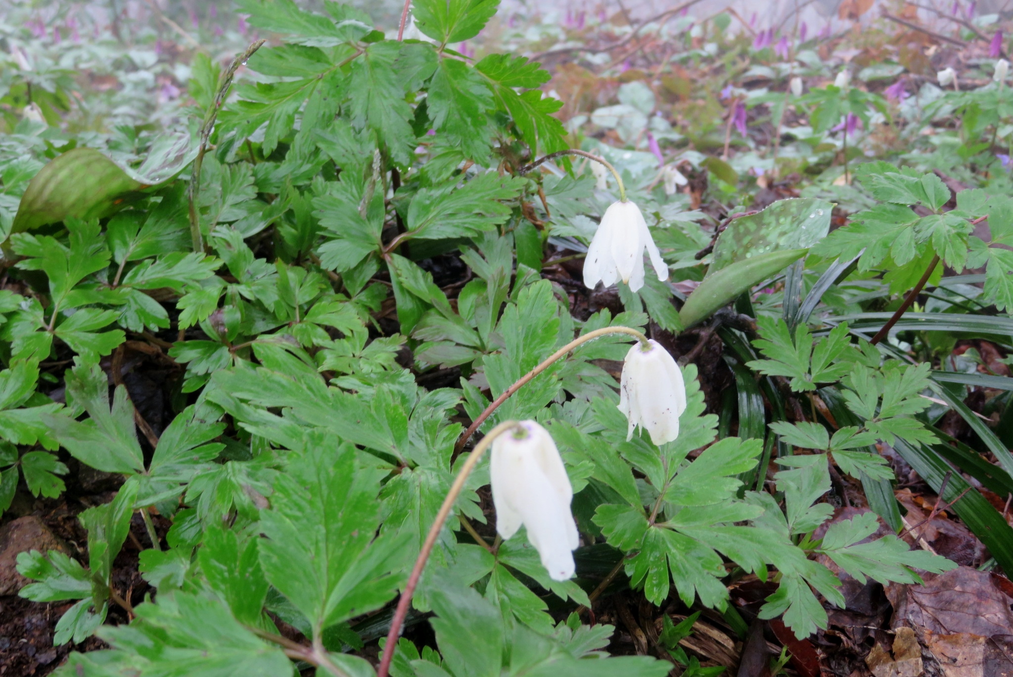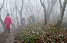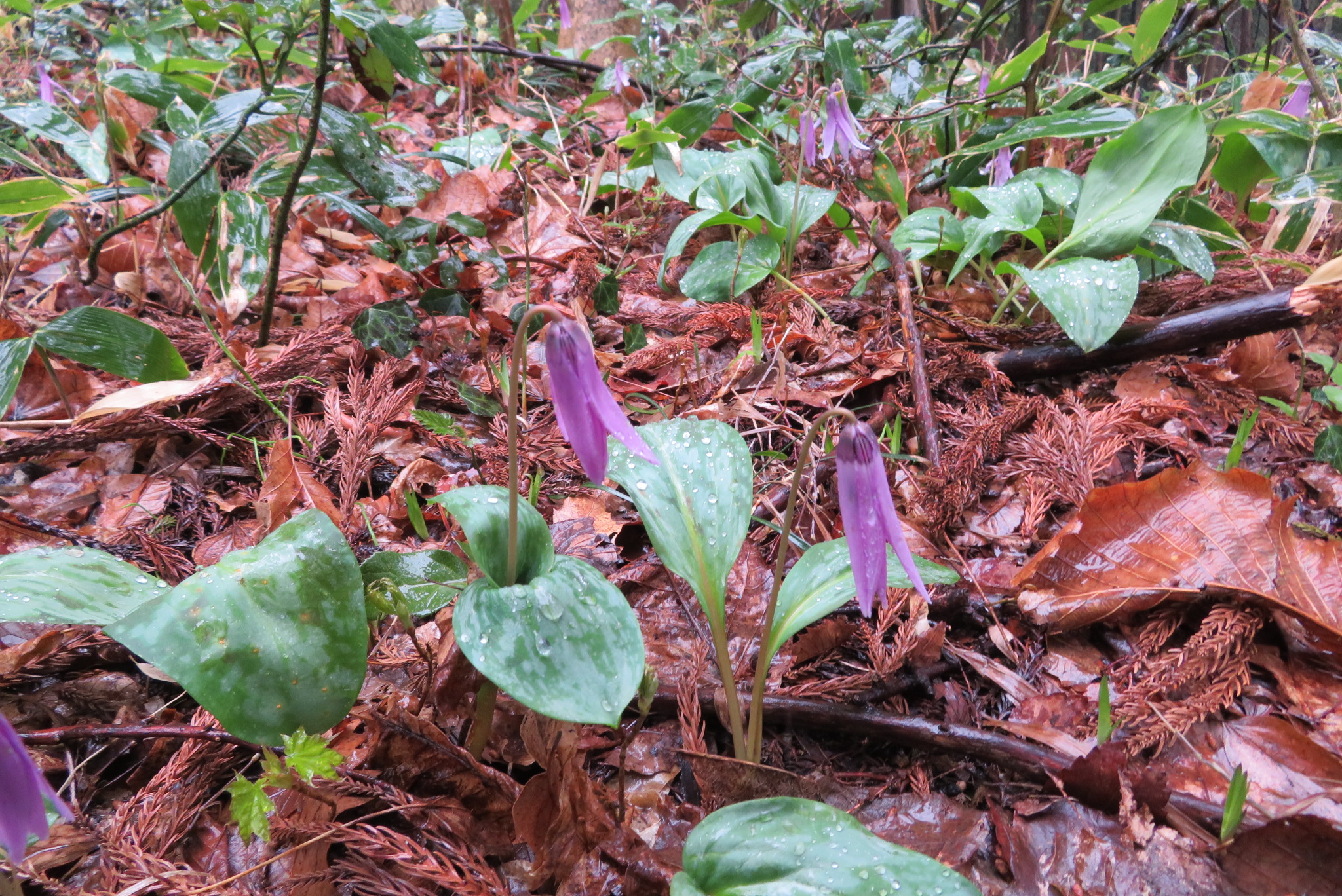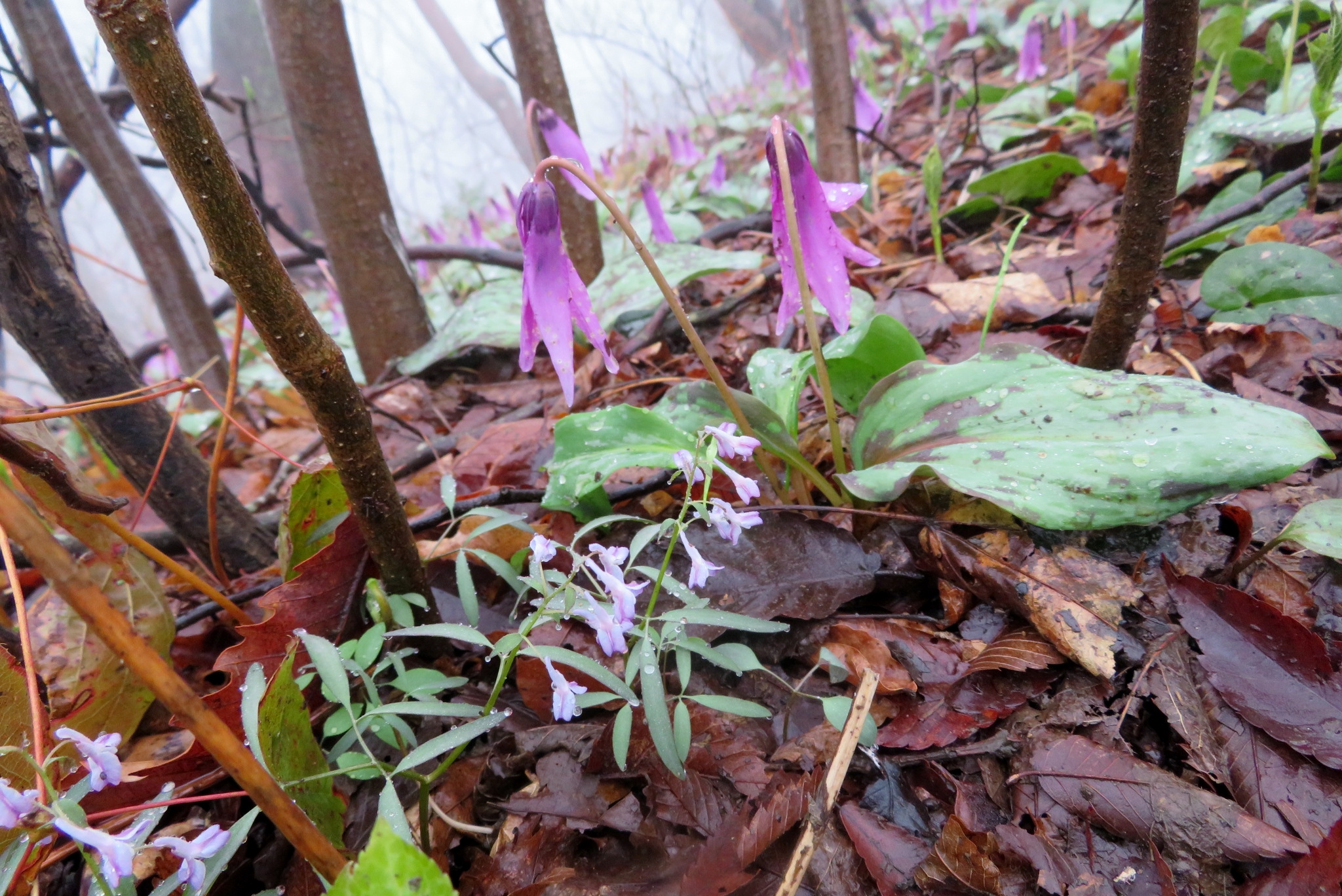 ![]() カタクリの花も雨で開いていない |