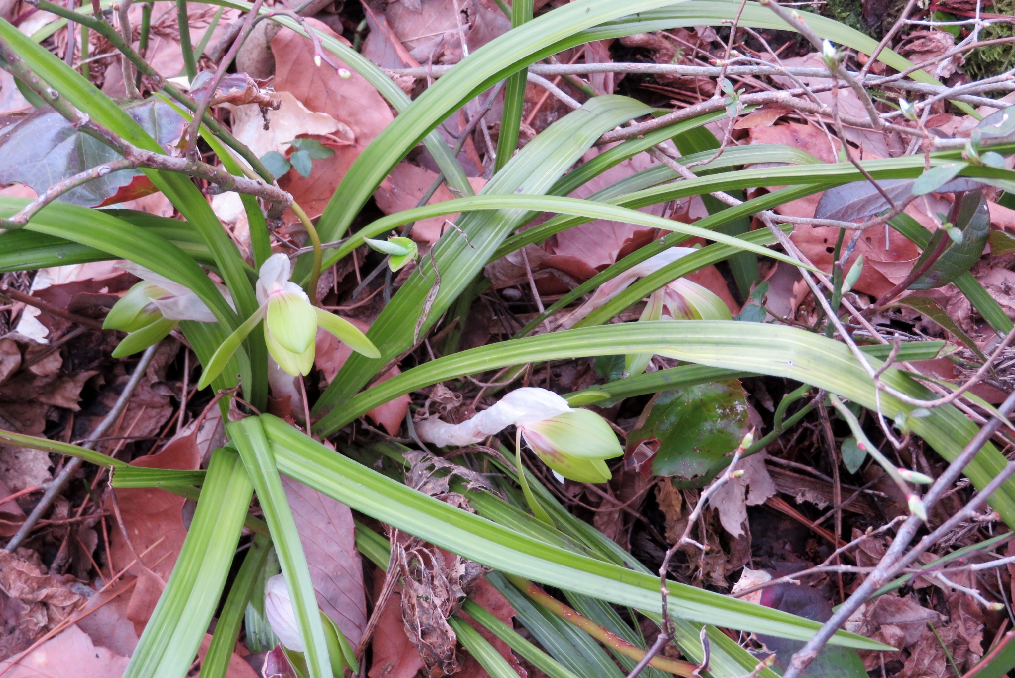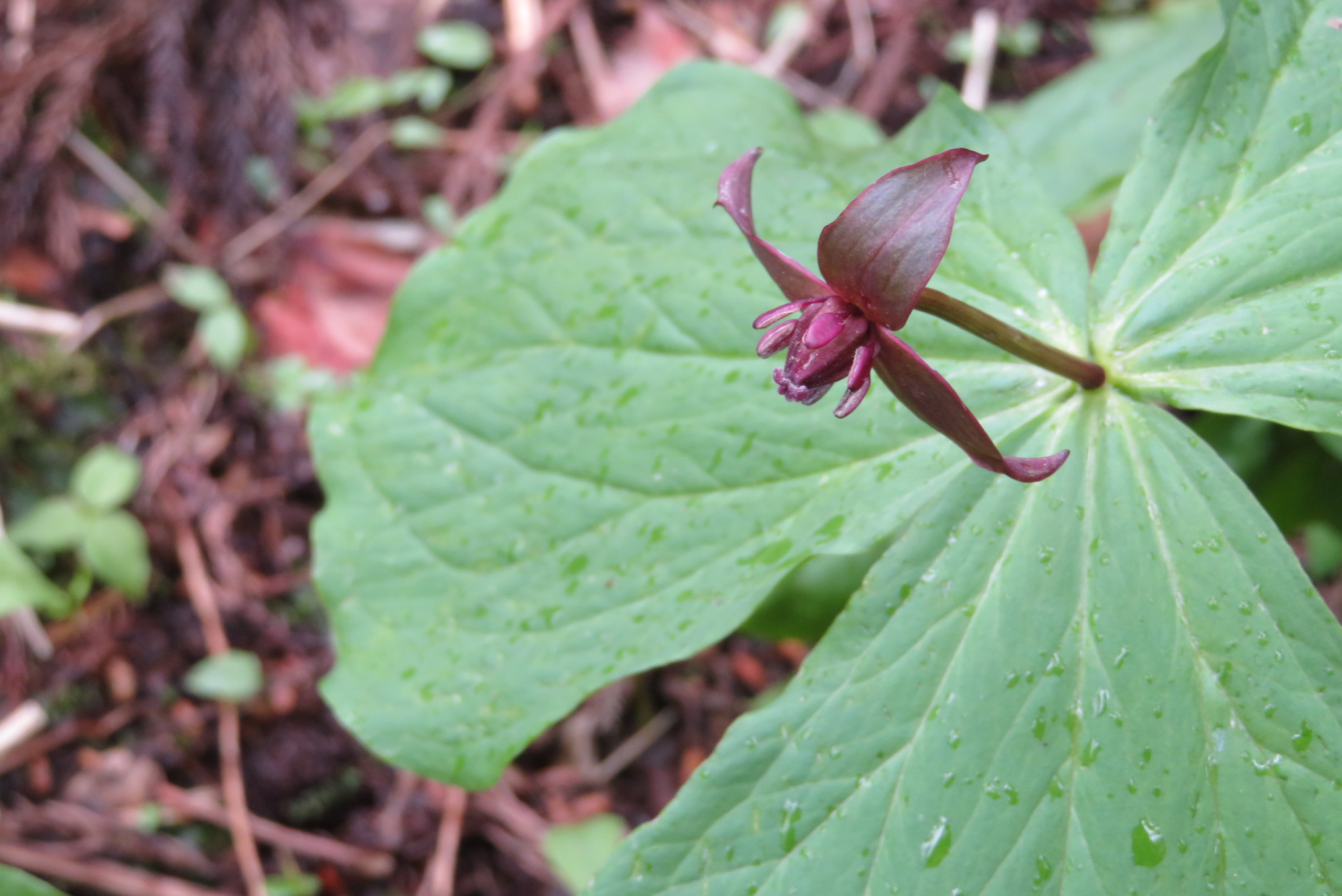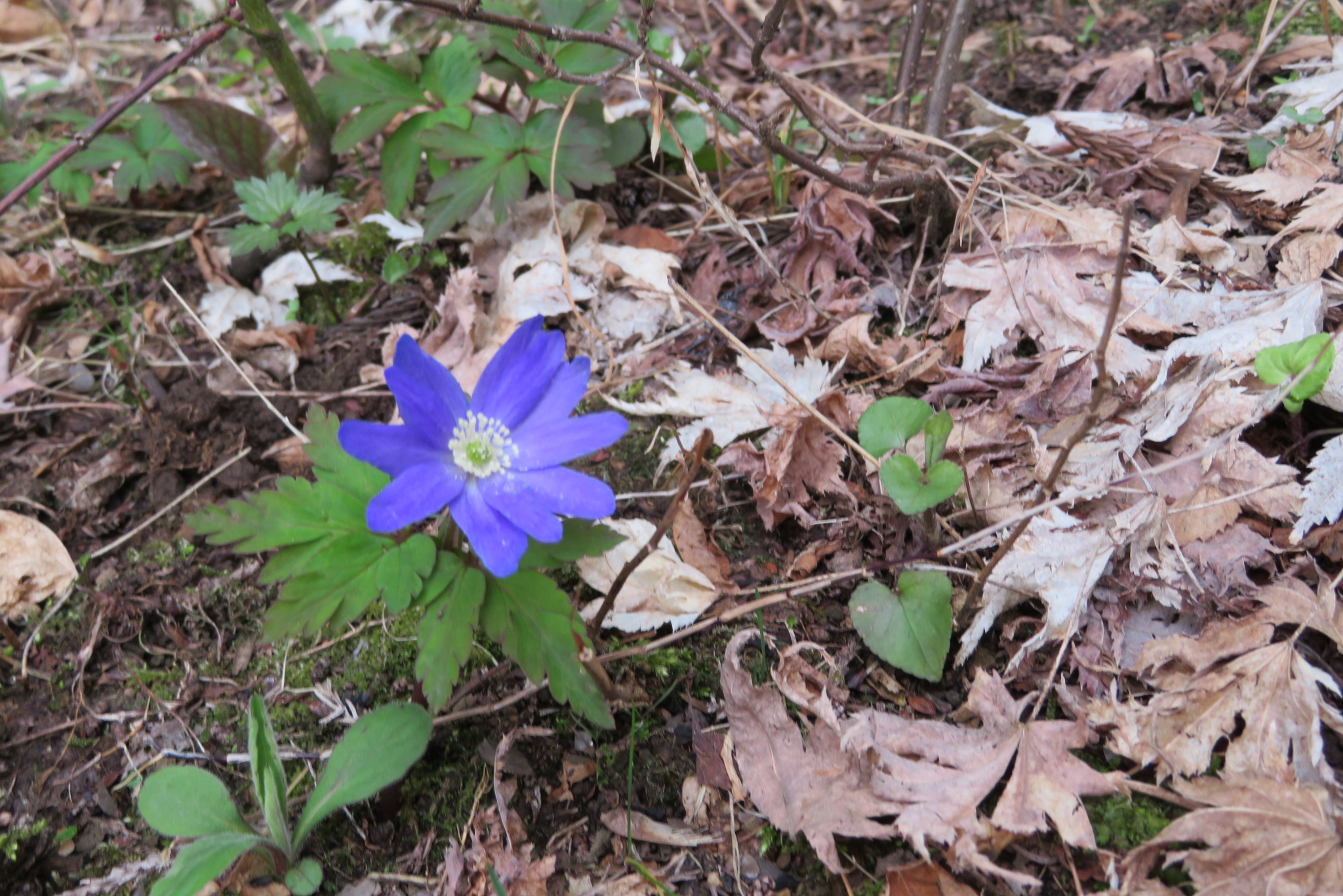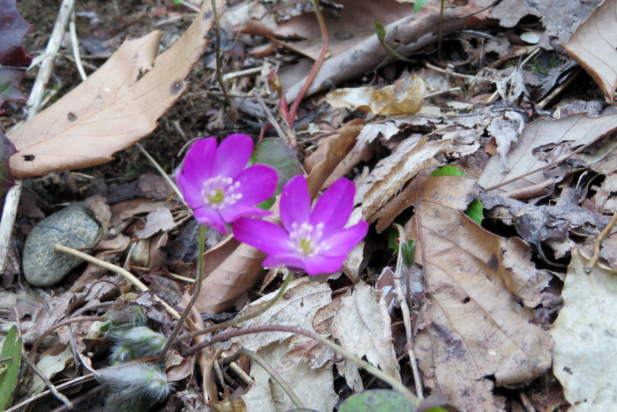 ![]() カタクリの花も雨で開いていない |